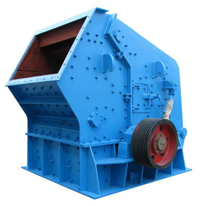 反擊式破碎機是利用沖擊能對中等硬度的脆性物料進行破碎的破碎機設備。工作時,在破碎機電動機的帶動下,轉(zhuǎn)子高速旋轉(zhuǎn),礦石從沖擊過程中獲得巨大的 動能,物料進入后,與轉(zhuǎn)子上的板錘撞擊破碎,并以高速拋向第一級反擊板,礦石再次受到破碎,被反擊板彈回來的礦石又再次受到錘頭的沖擊,繼續(xù)重復上述破碎 過程。